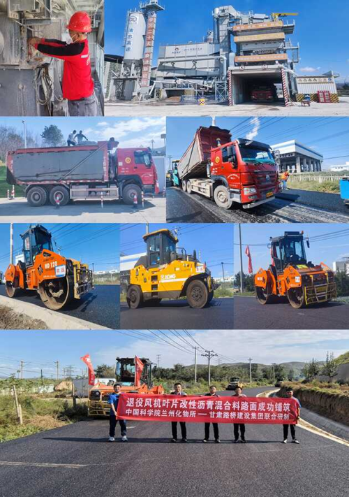 兰州化物所完成退役风机叶片改性沥青混合料示范应用路面铺筑