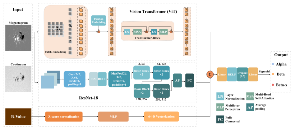 太阳活动区磁类型识别VIT-CNN-R模型结构示意图