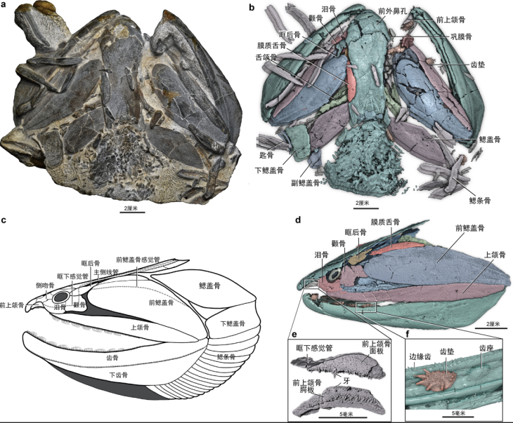 钝齿宏颌鱼化石及高精度CT重建。